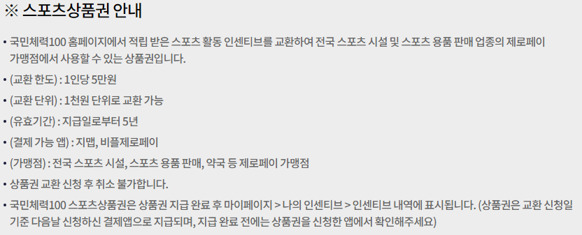 국민체력100 인센티브, 상품권